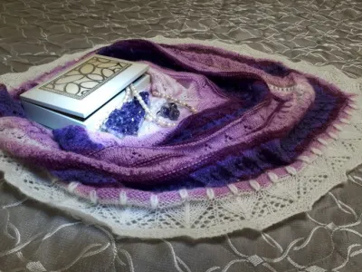 Шаль получилась тёплой и вкусной! Мне напоминает чернично-малиновый смузи!