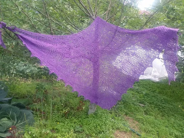 Заинтересовала Ваша «Орхидея» укороченными рядами и еще оливково-зеленая шали. Интересные работы! На сиреневой к сожалению не могу разглядеть узор, может есть фрагмент шали, где виден узор?
