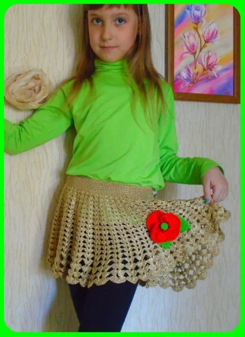 Любим мы с Дашей золотые ниточки! Вот какая юбочка получилась из них.