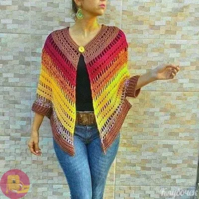 Жакет-пончо крючком.