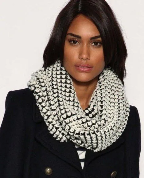 Пожалуй, свяжу себе такой снуд к своему черно-белому берету из мохера.