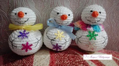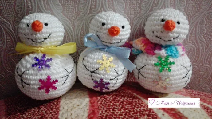 Снеговички - пряжа египетский хлопок. Крючок 2,5. Набивка Синтепух. Глазки бисер. Рот и ручки вышиты мулине.