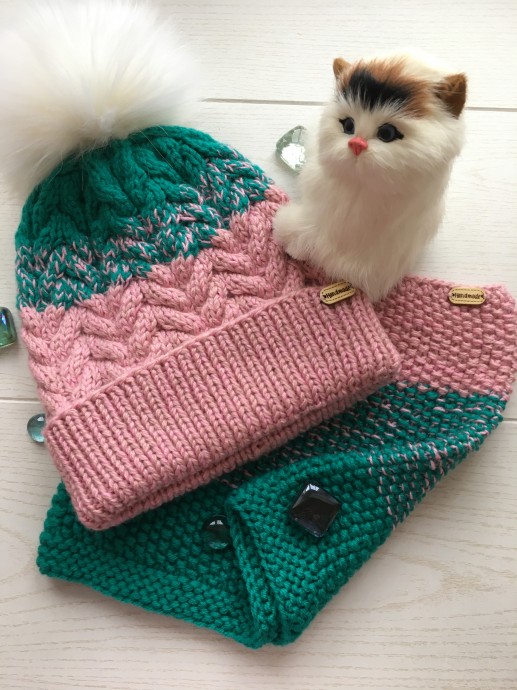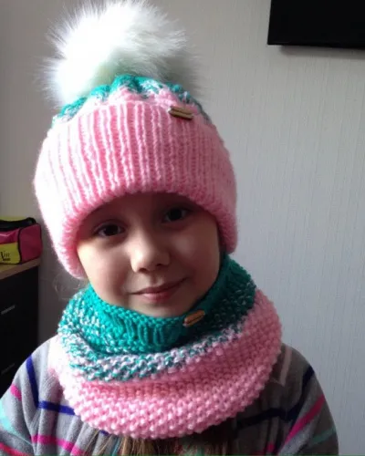 Комплект связан для подруги моей внучки. Захотела такую же, как у внучки, который я вязала в прошлом году. Естественно такую же пряжу я найти не смогла, но получились то, что получилось