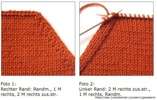 Лицевой край: 1 петля изнаночная. 2 -лицевые. 1 -изнаночная, 5 лицевых вместе провязать.