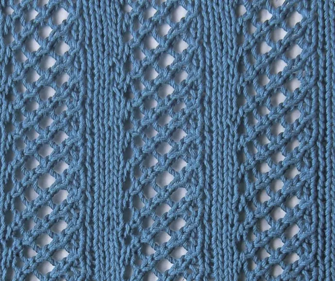 Вертикальный узор, основанный на чередовании ажурных и гладких полос, подчеркнет силуэт модели и поможет акцентировать внимание.
