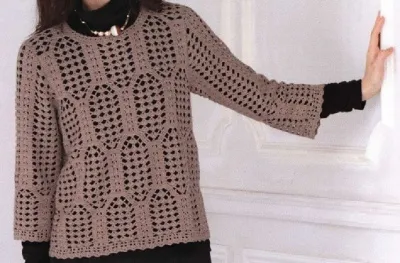 Понравился пуловер крючком. Схемы.