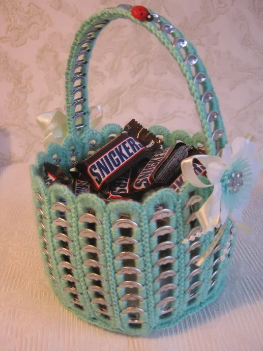 представляю вашему вниманию пьяную корзиночку, а почему именно я назвала пьяная, да просто она сделана из ключиков от пивных баночек