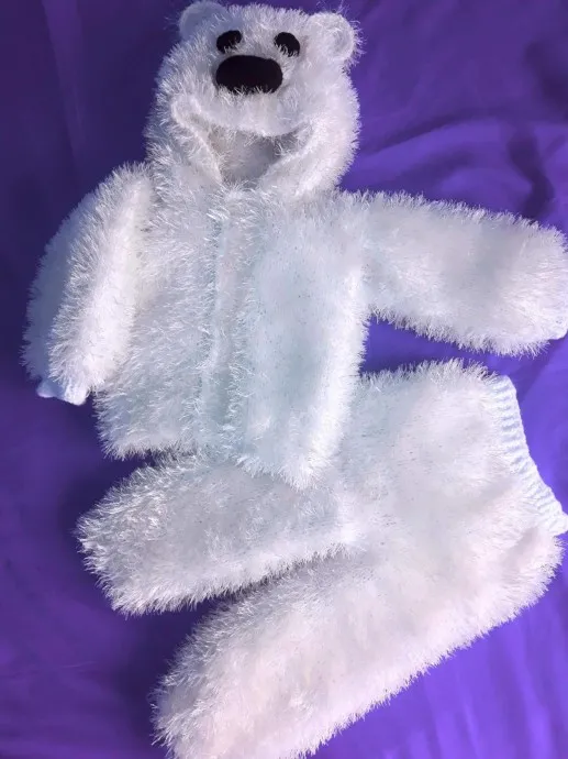 Костюмчик связала из пряжи травки и добавочную нить взяла детскую новинку.. Получился костюмчик ну ооочень тепленьким