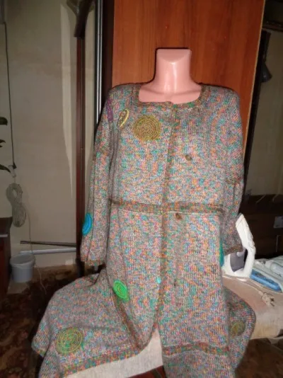 Связала пальто по идеи Светланы но на свой лад не судите строго Вязала спицами 4,5 декор крючком Пряжа Нако беби микс и мохер деликат Мохер в 100 г 500 м ушло три с половиной мотка Основная в 100 г 360 м ушло семь с половиной мотков Извините фото не очень Пришлось переснять на фотоаппарат и вот вроде грузится а то 3 дня ни в какую Муж говорит бледное а мне нравится Лицо на 4 пуговках изнанка на завязках нет пока декора инет фото