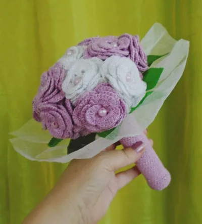 замечательный букет! для тех, кто планирует свадьбу в вязаном стиле — находка!