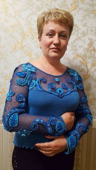 Хочу показать свой джемпер, который связала ещё 3 года тому назад. "Заболела" я тогда ирландским кружевом, и вот что у меня получилось. Спинку и полочку вязала спицами из пряжи "Весенняя" от Пехорки