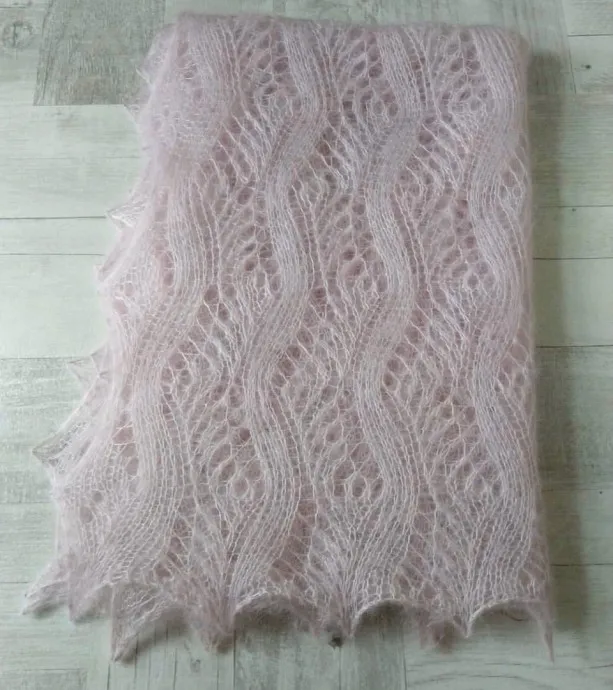 Как нежно смотрится палантин! Даже заболела таким! Ура! Нашла у себя в закромах 5,5 моточков розового мохера (Камея люкс мохер).