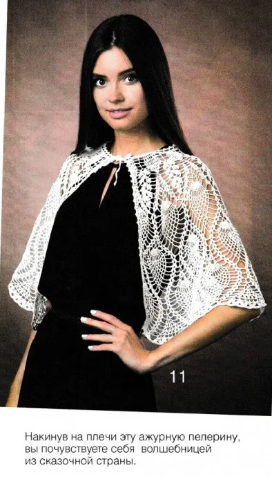 Ажурная пелерина связана крючком. Схема и описание. Напечатано в журнале "Вяжем крючком" за 2016г.