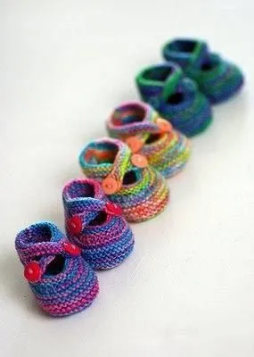 Эти очаровательные пинетки выполнены платочной вязкой.
