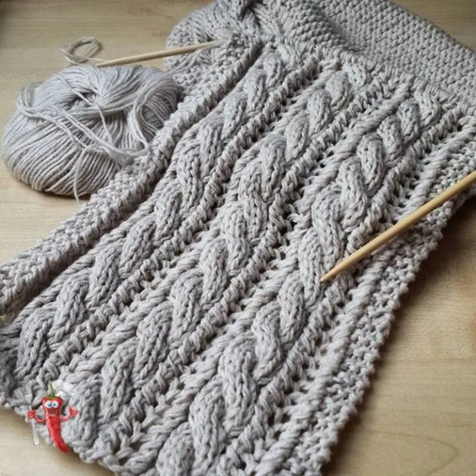 Спасибо! Понравилось, что края снуда выделяются и ажура много, и рисунок не сложный, т.к. жгуты уже легко научились вязать.