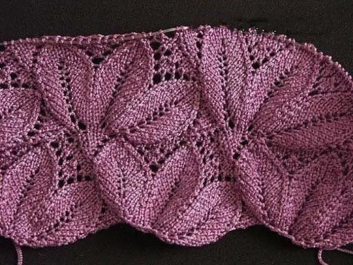 Елена, меня научила как вяжется этот узор моя сестра. Она долго с ним мучилась, а потом попросила помощи на passionforum, ей помогла девочка из Мексики. Вяжется мотивами. Набираете 8 петель( 6п узора и две кромочных), вяжете по 29 ряд. В конце 29 ряда из последней петли набираете 7 петель( лиц, накид, лиц., накид, лиц., накид, лиц) и провязываете оставшуюся кромочную. Далее из этих 8 петель вяжете второй мотив, прикрепляя одну его сторону к предыдущему мотиву( в конце ряда последнюю петлю и рядом петлю- вместе). Так вяжется полоса нужной длины( у меня до горловины спинки- 6 мотивов, а до горловины переда 5 мотивов). Провязав последний мотив, закрываете петли до центра среднего лепестка о опускаетесь вниз, провязывая петли. Внизу из предпоследней петли набираете 7 петель, кромка и вяжется вторая полоса. У меня половинка переда и спинки состоит из 4 полос. Связав половинку спинки( переда), в точке 1 набираете петли на новый мотив и вяжете зеркально. Горловина у меня получилась квадратная, но с резинкой смотрится трапецевидной, Попробую прикрепить изображение топа и фото, если получится.