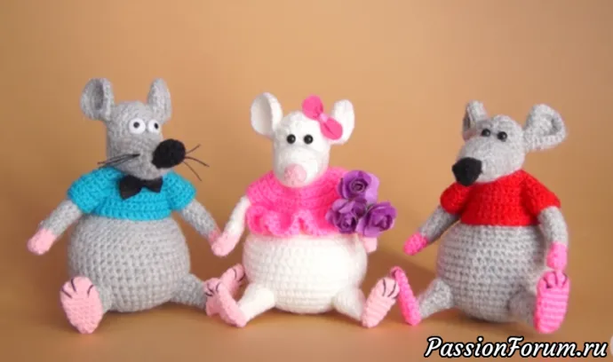 Мастер-класс отLila Knitt по вязанию крючком забавного крыса амигуруми. Можно изготовить парочку крыс — крыса-мальчика в свитере и девочку в платье.