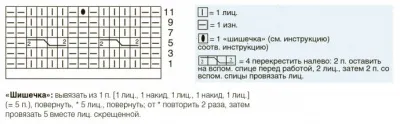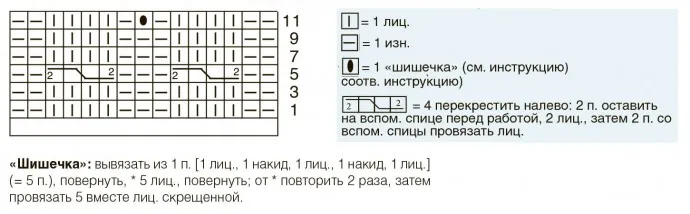В изн. р. все петли вязать по рисунку, «шишечки» – лицевыми.