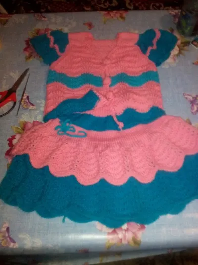 Костюмчик для маленькой принцессы! Моя золовка обозвала этот узор «Три пера», когда мы с ней вязали таким узором маечки себе лет 30 назад. Теперь не могу без смеха вспоминать, как мы их весело вязали и смеялись над ее названием. Спасибо, вызвали теплые воспоминания моей молодости!