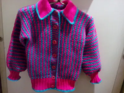 Ирина, кофточка шикарная! Яркая, девчачья, все очень аккуратно, воротничок, планочка не загибаются — полный шик!