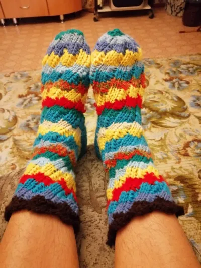 мимо чего проходить то? яркие носочки, связаны аккуратно, и похаять не за что… пусть эта феерия нам свои ноги сфоткает… хоть поржем))) хочет она видите ли… я вот хочу фотосессию ню с ней и в кактусах)))