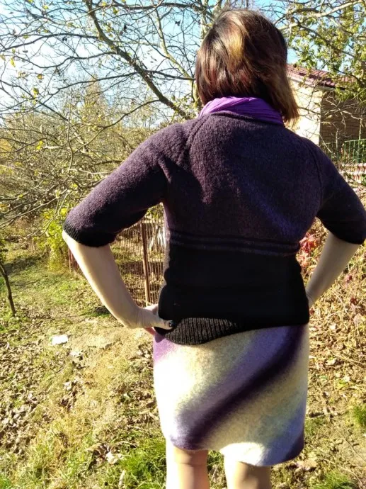 Совместная работа ,дочечка связала юбку, я её сшила трикотажным швом и подваляла в стиральной машинке, т.к изначально юбка была связана на 2 размера больше. Свитер - из того что было ,работа моя. Общими усилиями получили довольно не плохой комплект. Юбка пряжа кауни томас, ну а свитер из того что было, главное что бы подходил к юбке.