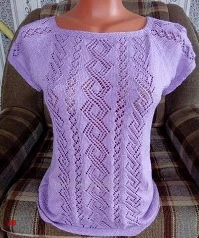 Правильно подобран вариант вязания рукава. Рукав реглан, связанный лицевой гладью, подчеркивает целостность и утонченность ажурного узора.