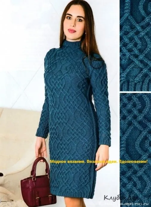 Платье аранским узором. Платье вяжется спицами. Схемы и описание.