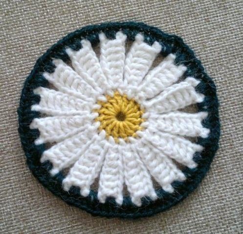 Вот и все! Размеры подставок зависят, конечно же, от толщины пряжи и крючка. В моем случае, ромашки вязались крючком №5 и получились 15 см в диаметре.