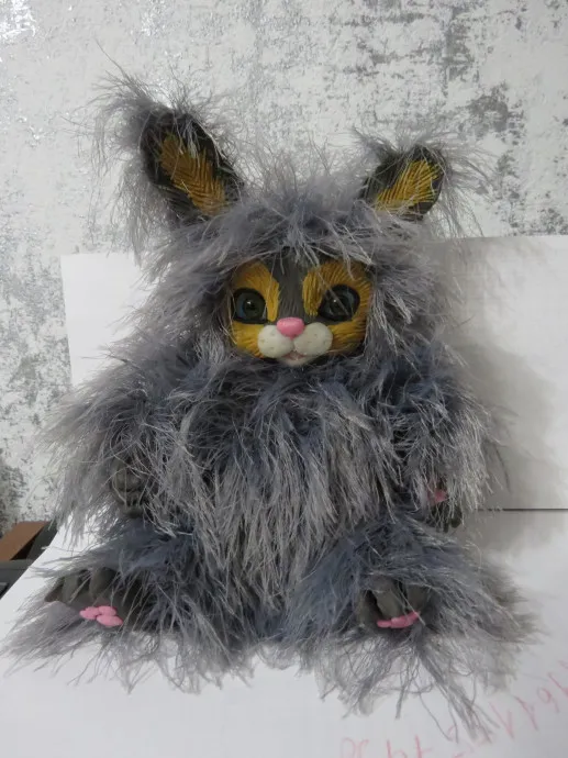 Мордочка, лапки, ушки из запекаемой полимерной глины слепила.