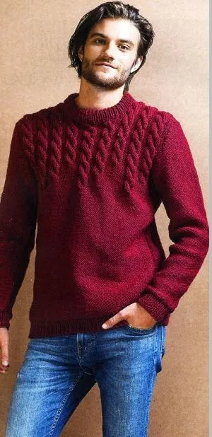 Вам потребуется: пряжа Novita Isoveli (75% шерсть, 25% полиамид, 130 м/100 г) - 900(950)1000(1050)1100 г бордового цвета (587), спицы № 6, круговые спицы № 6 (длиной 40 см).