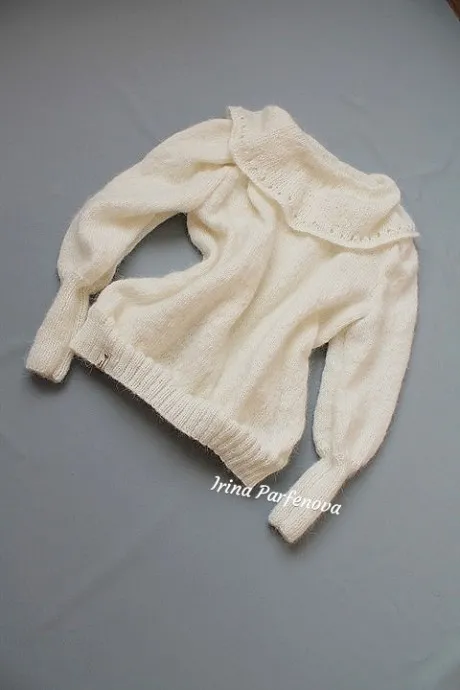 Ажурный пуловер связан из пряжи Sofit 100г/380м,состав 45%шерсть 55%шелк(искуственный).спицы 3,расход 400г