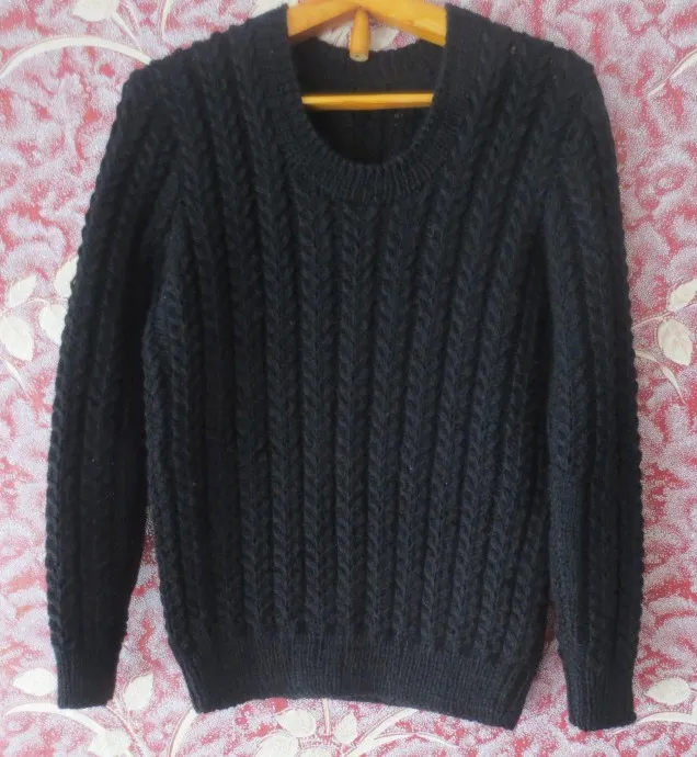 Пуловер черного цвета связан в школу. Так просили родители.