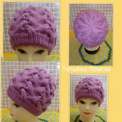 Шапочка утепленная подкладом из флиса. Пряжа Ализе Ланаголд Классик. В 100гр 240метров. Рисунок коса из 15 петель.