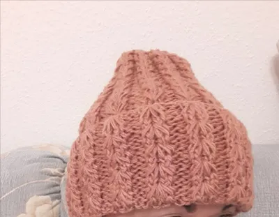 зимняя шапочка связана из 100 % шерстяной пряжи узором "Колосок"