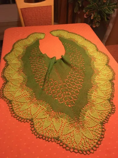 Вязала в две ниточки спицами 2,5. Получилась средних размеров шалька, нежная весенняя зелень. Мягенькая такая, приятная.
