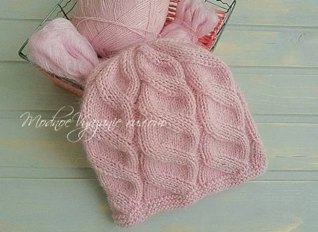 Шапка для девочки узором "Ложная коса"