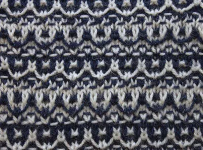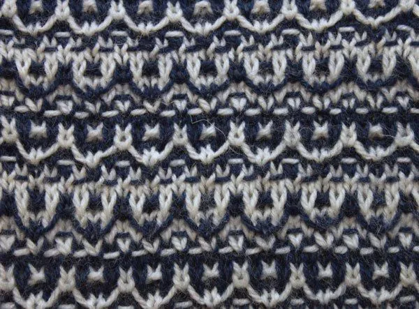 У меня в копилочке, есть этот узор, но пока не применила нигде(. Смотрится, интересно, и без протяжек, получается, как «ленивый» жаккард.