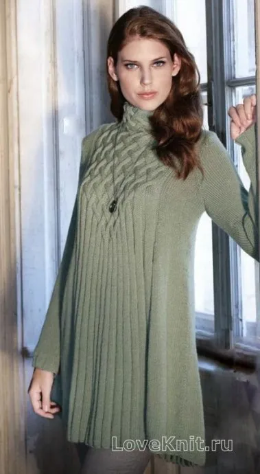 Очень красивая и теплая туника спицами