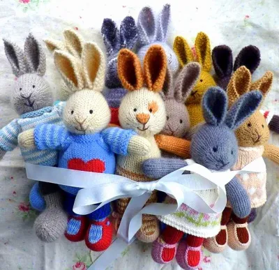 Отличный вариант подарка, даже к Пасхе, подойдут эти зайчата вязанные спицами. Знакомьтесь с подробным описанием работы. Цветовая гамма может быть любая на свой вкус.