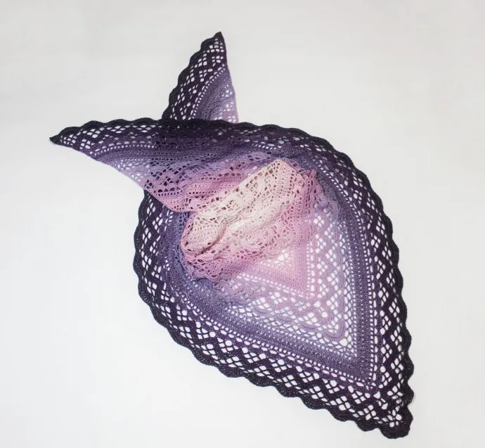 Шаль Klaziena по дизайну Kirsten Bishop. Пряжа YarnArt Flowers (55% хлопок, 45% полиакрил) цвет 276. Размер по длинной стороне 180 см, по центральной части 90 см. Шаль свободна и ждёт свою красивую и заботливую хозяйку. Стоимость обнимашки 3500 руб. плюс стоимость доставки согласно тарифам почты России.