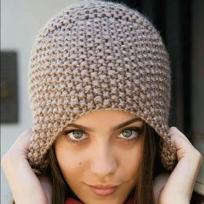 Самая быстрая в вязании шапка – это когда вы просто выбрали один несложный узор (резинка, английская резинка, вязка-рис)… И гоните почти всю (а то и всю) часть полотна в одном узоре. Начиная с макушки – в каждом ряду начинаем убавлять петли, и когда на спицах останется 15-20 петель – мы протягиваем через них нитку – и просто стягиваем их в один пучок-точку на затылке. По такому принципу связана шапочка на фото ниже — (25 рядов вязка узора «рис»… и 15 рядов изнаночными петлями с убавлением).