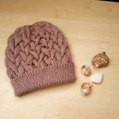 Вяжем шапочку с объемными косами. Описание. Без схемы