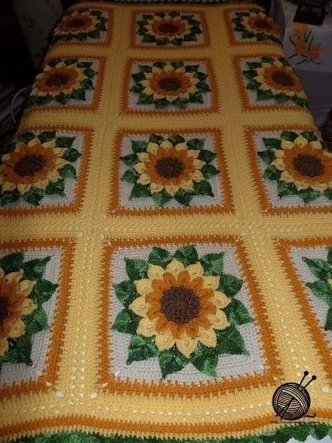подсолнух шикарный. полтора года назад именно по этой схеме, немного изменив основу, я связала свое покрывало 2,5 на 3 метра. радует глаз…