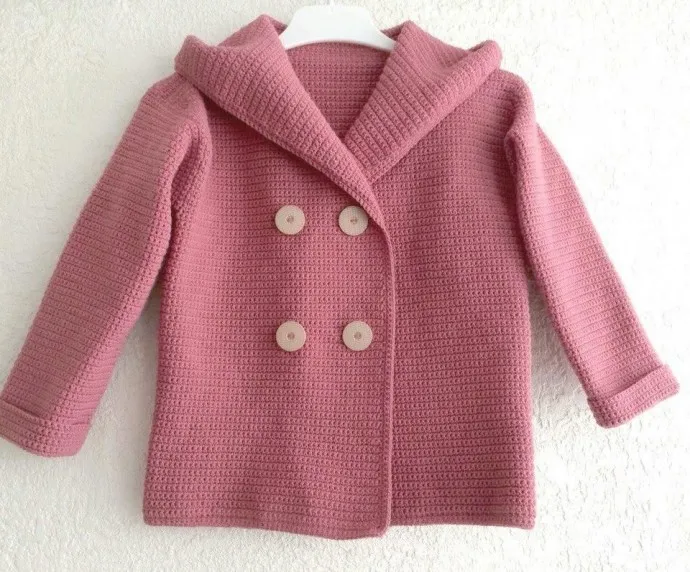 На оставшихся петлях передних полочек и спинки вяжем капюшон. Сзади (на спинке) можно сделать несколько столбиков прибавки, чтоб капюшон был объемнее.
