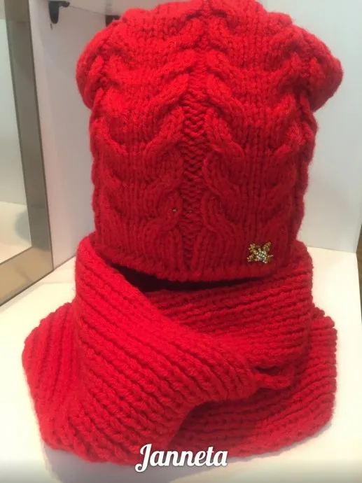 Комплект вязанный спицами на зиму-шапочка и шарф.