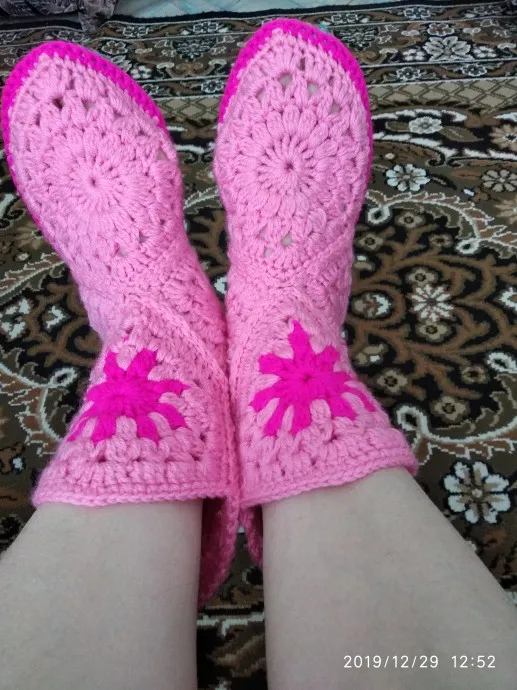 Связаны из остатков детской пряжи, крючком номер 4, на войлочной подошве