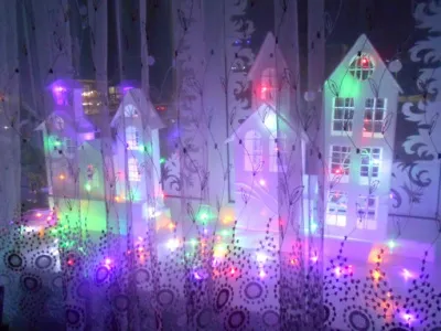 Мы уже такие взрослые, но я уверена, что все мы верим в чудо, верим в сказку, и дарим её нашим родным и близким, любимым внучатам. В канун Нового года и я подарила своей внучке вот такое волшебство: украсила окно домиками, которые сделала из потолочной плитки, елочками и гирляндами, на стекла приклеила вырезанные морозные узоры. Поучилось сказочно. Пусть и в ваших домах тоже будет хоть чуточку волшебства, которое помогает нам мечтать, творить и радоваться жизни.