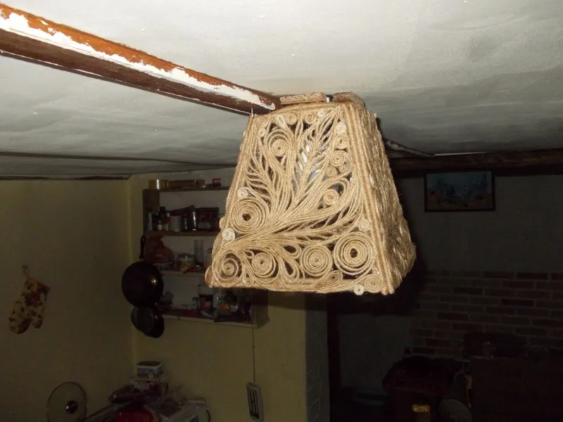 Привет, давно не была. Вот, вспомнилось давнее увлечение, не совсем вязание, но всё же...Захотелось мне новый абажур на кухню, ну, я его и "сваяла"... Мило, нет?