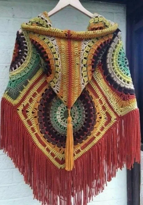 Это просто бомба!!! Мексиканские цвета, бахрома и классические квадраты. Пора мне уже учится вязать крючком…